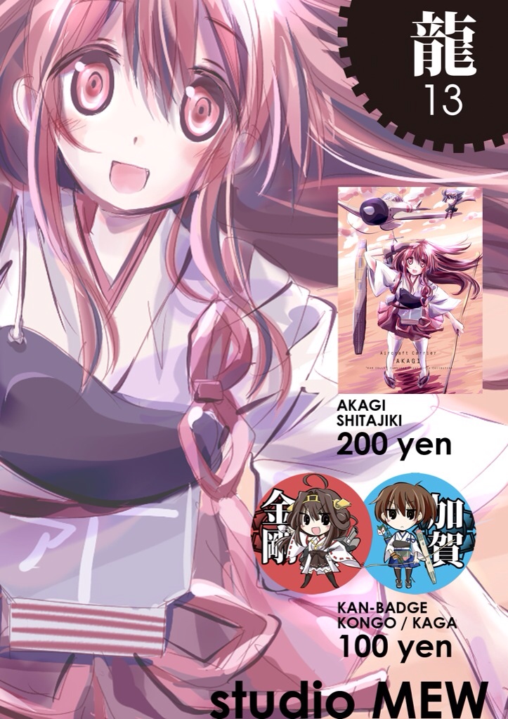 また既刊で赤城さんしたじき(¥200)、加賀さん金剛ちゃんの缶バッチ(各¥100)も持って行きますー。